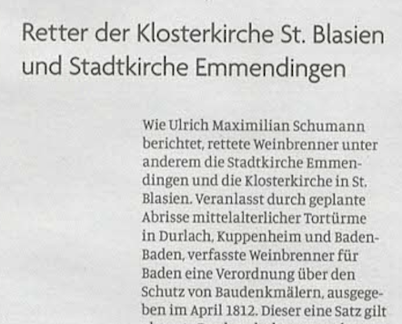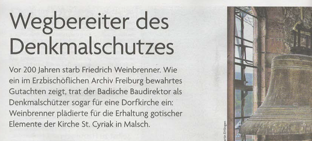 Was bislang oft noch unbeachtet bleibt, ist in der katholischen Wochenzeitung zum Aufmacher geworden: Weinbrenners Pionierrolle im Schutz historischer Bauwerke.